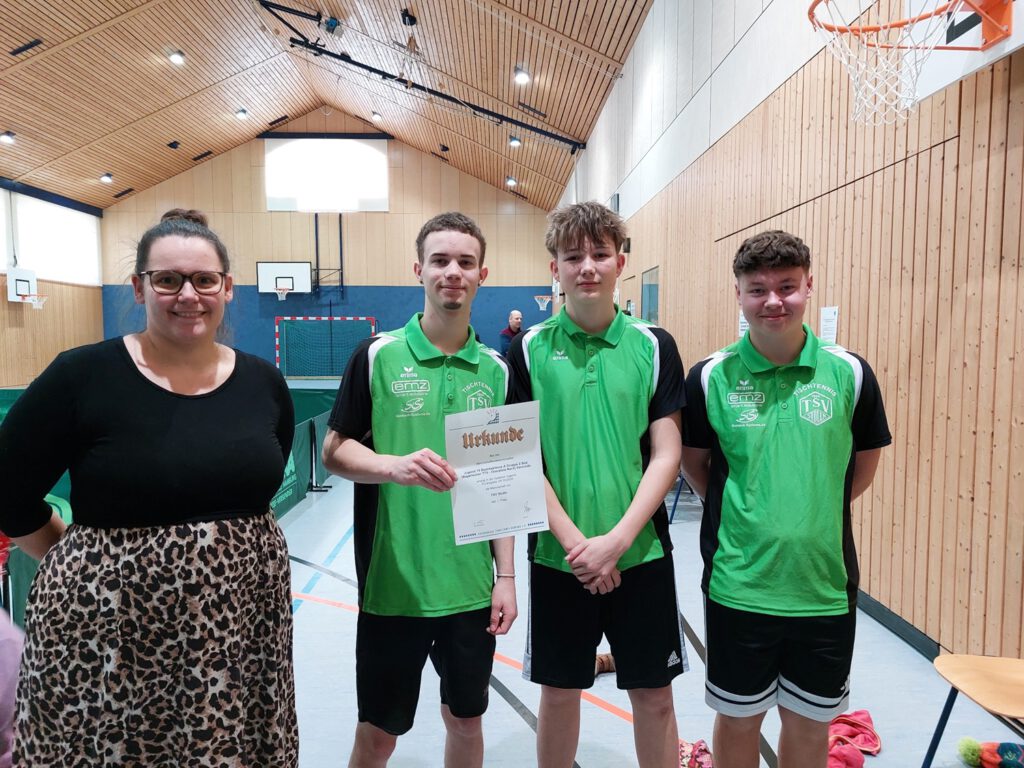 durch Bezirksjugendwartin Katja Götz (Li.), weiter im Bild vo. li. Yannick Brill, Korbinian Hübbers und Jonas Balk (Bild Erich Kneißl)